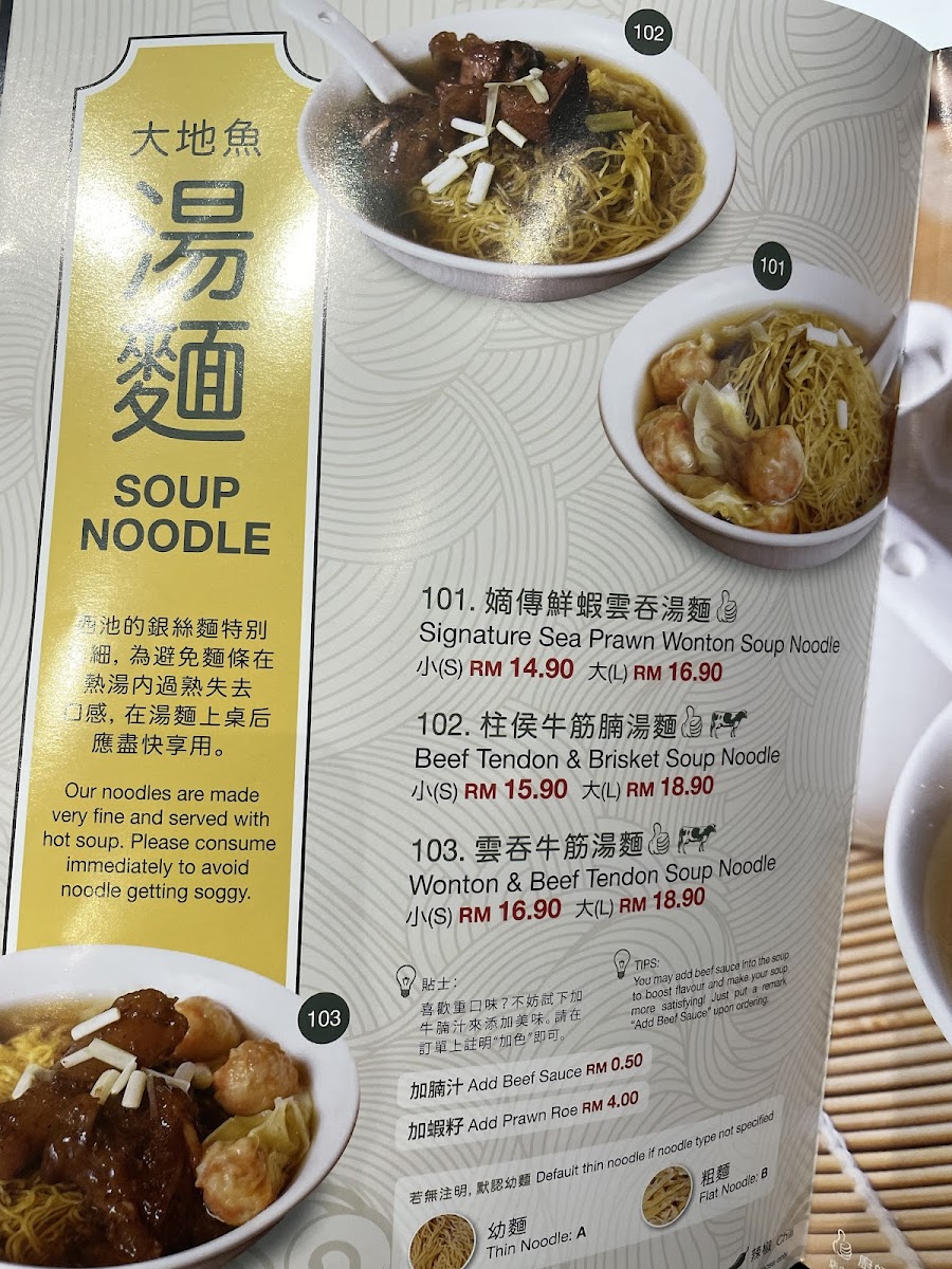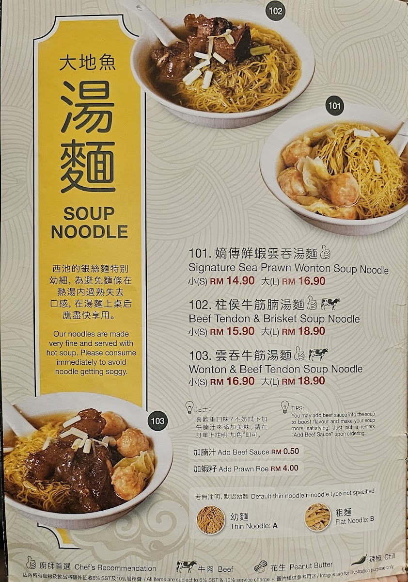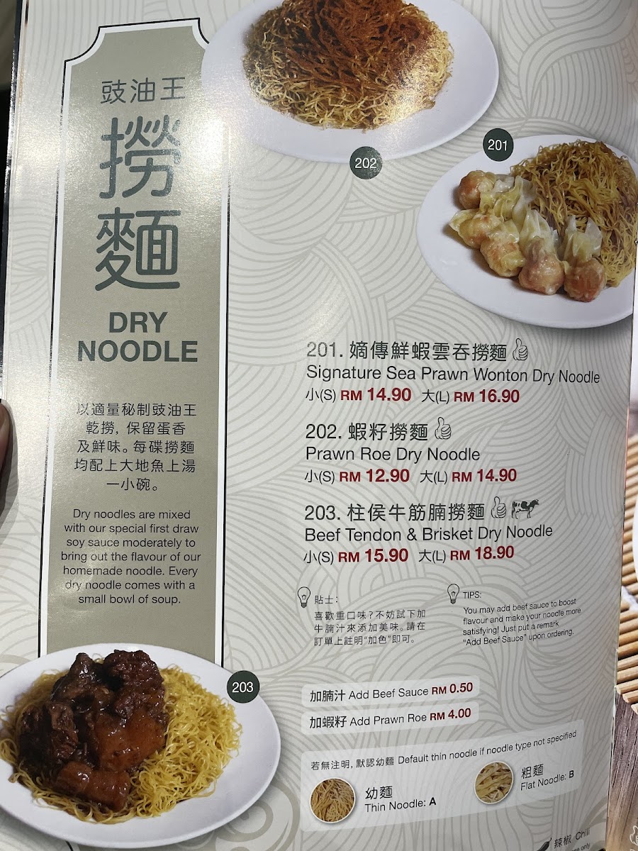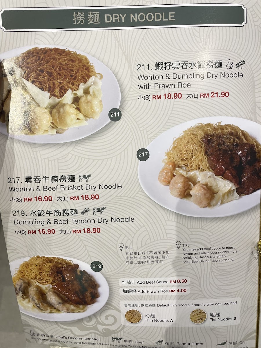 Mak's Chee Authentic Wonton @ 1 Utama Shopping Mall Menu